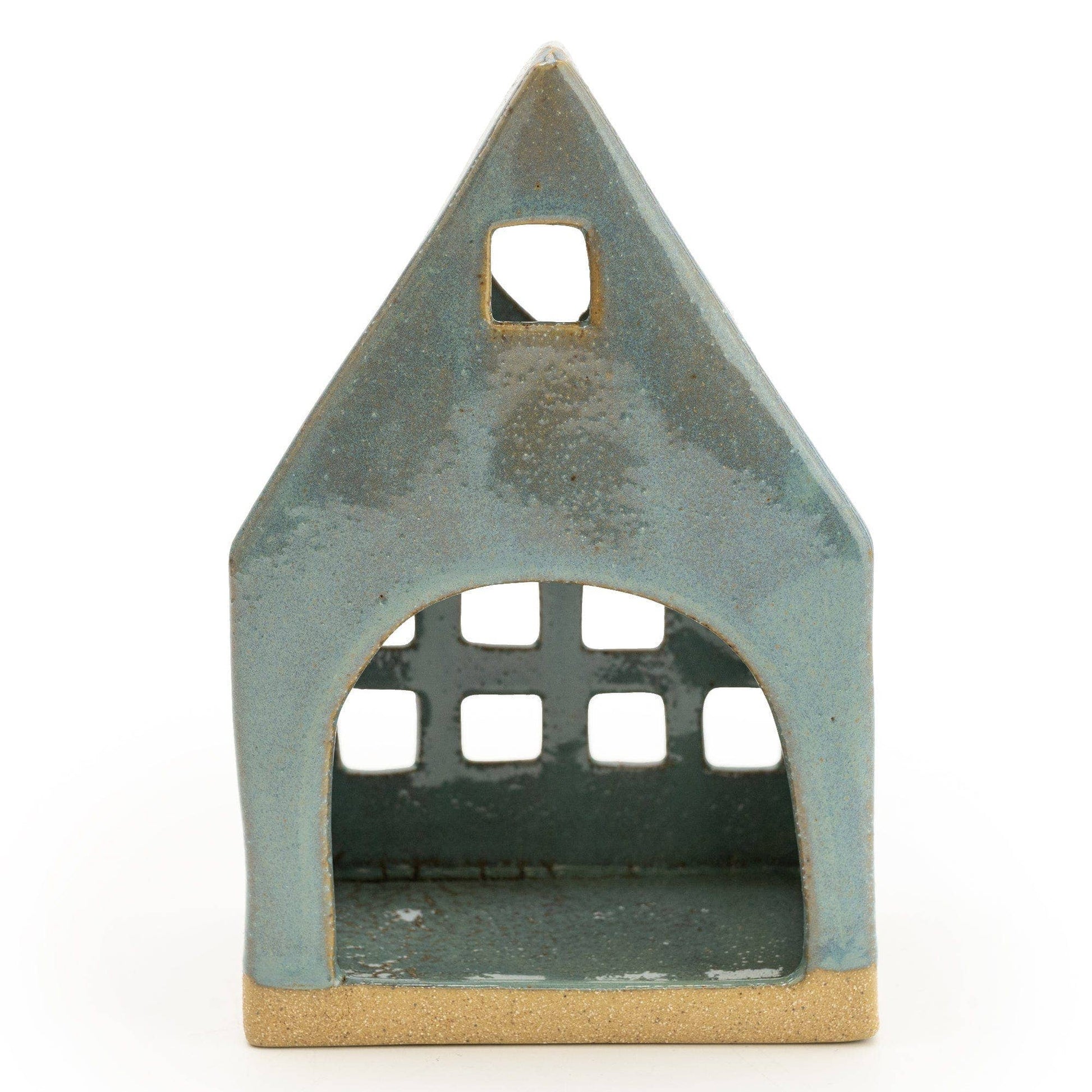 The Blue House Tealight Holder is a captivating and whimsical addition to any space, designed to hold and showcase the gentle glow of a tealight candle. Crafted in the shape of a quaint house and finished in a serene shade of blue, this holder adds a touch of storybook charm to your decor. The windows and doors of the house allow the flickering candlelight to shine through, casting playful shadows and creating a warm, inviting ambiance. Perfect for setting a relaxed mood in living rooms, bedrooms, or on dining tables, this tealight holder is both a functional and decorative piece. Its charming design and soothing blue hue make it a delightful accent for a variety of interior styles, and it's particularly enchanting when grouped with other house-shaped holders to create a miniature village of light.